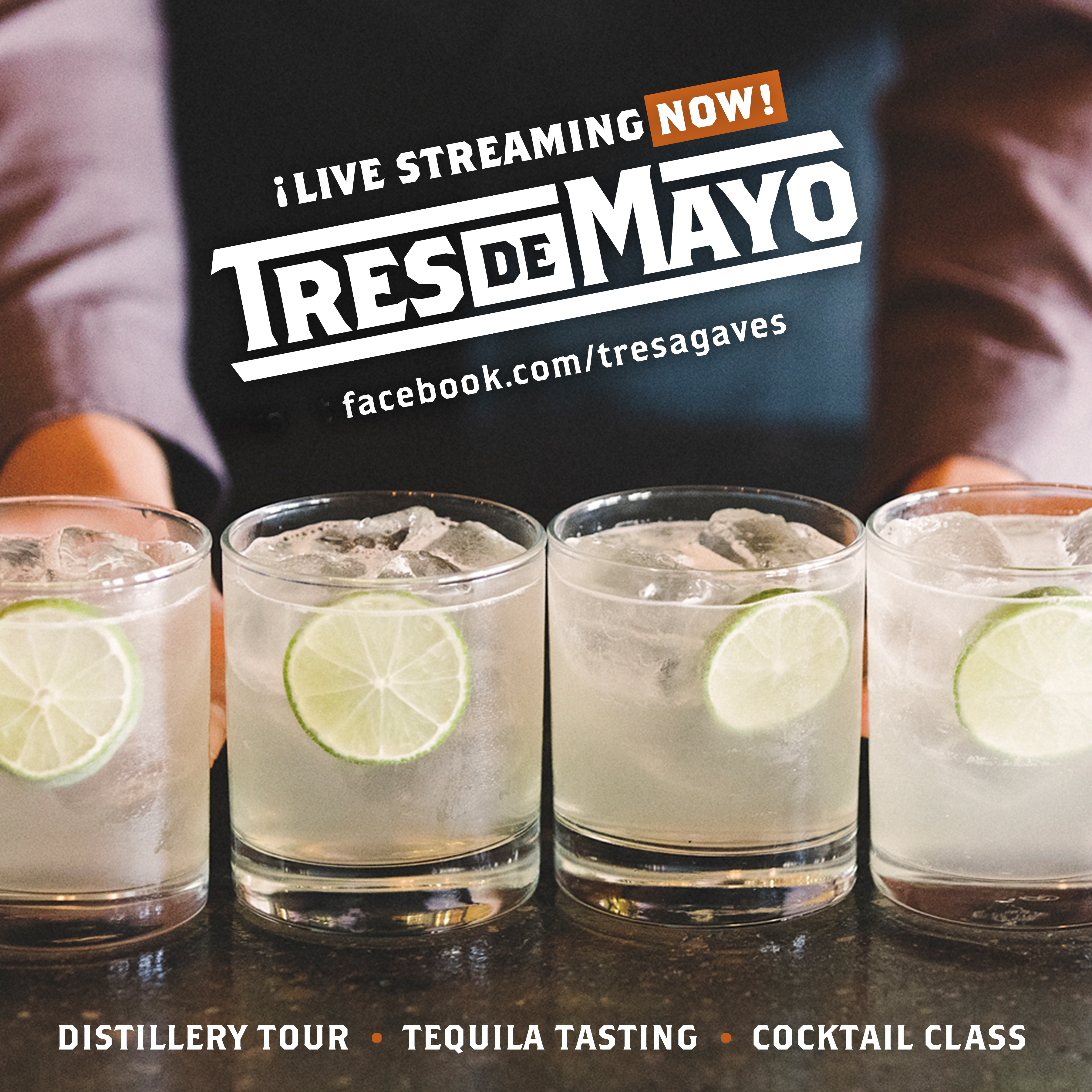 As a play on Cinco De Mayo, we worked with our clients Tres Agaves to promote their virtual celebration of Tres De Mayo. The event was to livestream on Facebook and boast cocktail classes, food pairings, tequila tasting, and a virtual tour of the distillery in Amatitan, JAL Mexico.